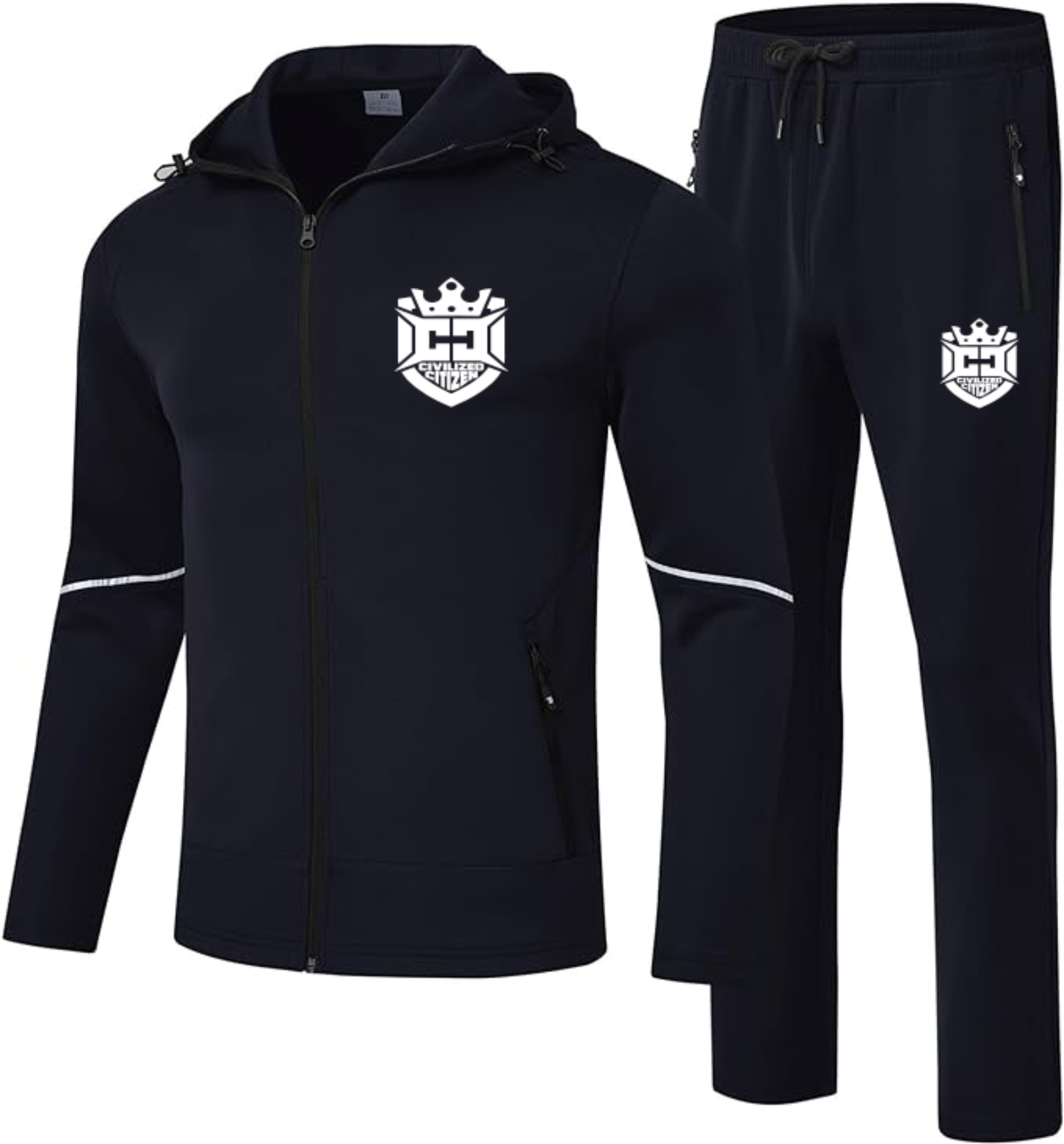 Perfect for spring, fall, or winter, our Civilized Citizen Hooded Tracksuits keep you comfortable and stylish.